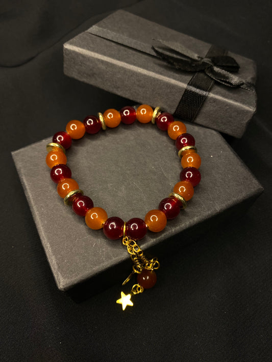 BRBST-01- Double Shade Brown Stone Bracelet with hanging chain and butterfly Charm